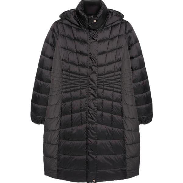 Piumino da donna in nero pece collo con cappuccio lungo con zip