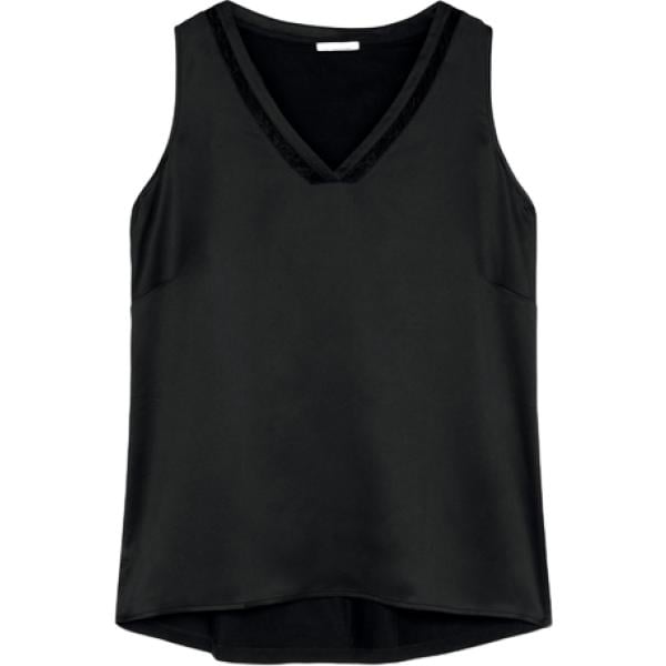 Top da donna in nero pece con pizzo collo a v senza maniche in viscosa