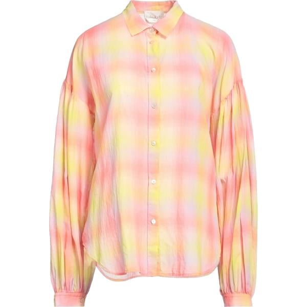Camicia da donna in rosa chiaro collo a v a maniche lunghe con bottoni
