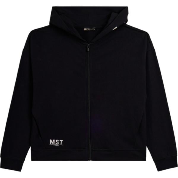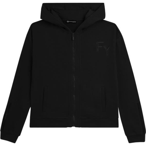 Felpa sportiva da donna in blu scuro con glitter collo con cappuccio lungo a maniche lunghe con zip