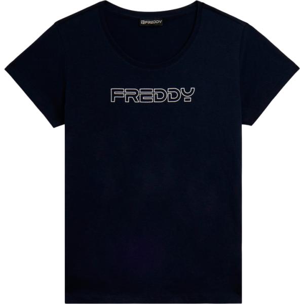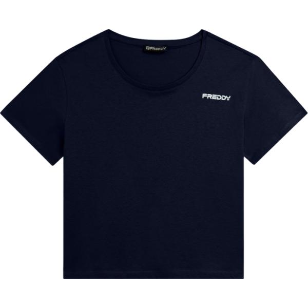 T-shirt sportiva da donna in blu scuro con scollo a maniche corte