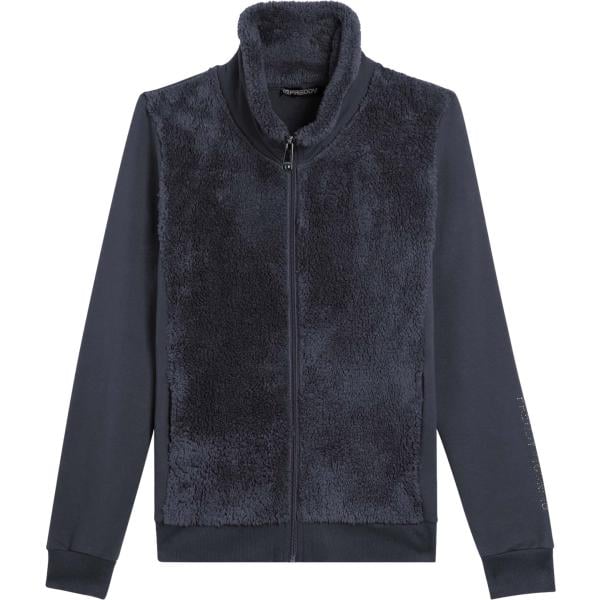 Felpa da donna in blu scuro con glitter collo alto a maniche lunghe con zip