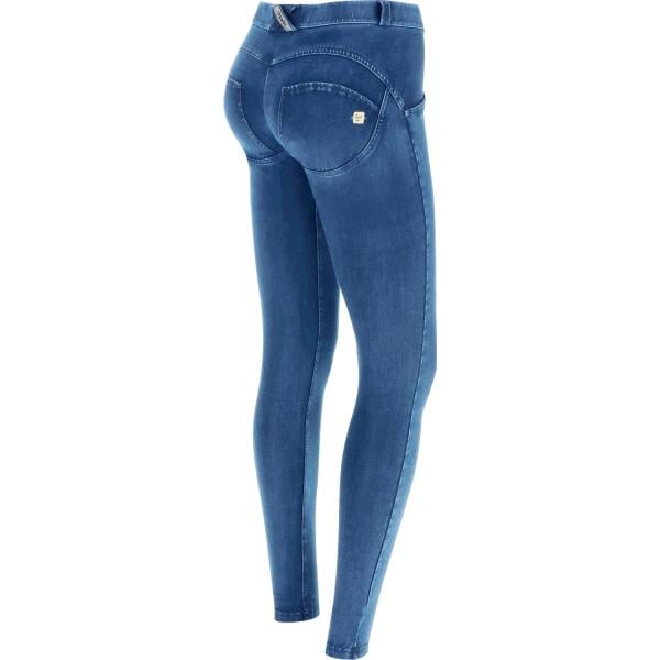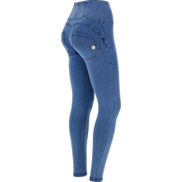Jeggings da donna in blu scuro modellante a vita alta con zip in denim