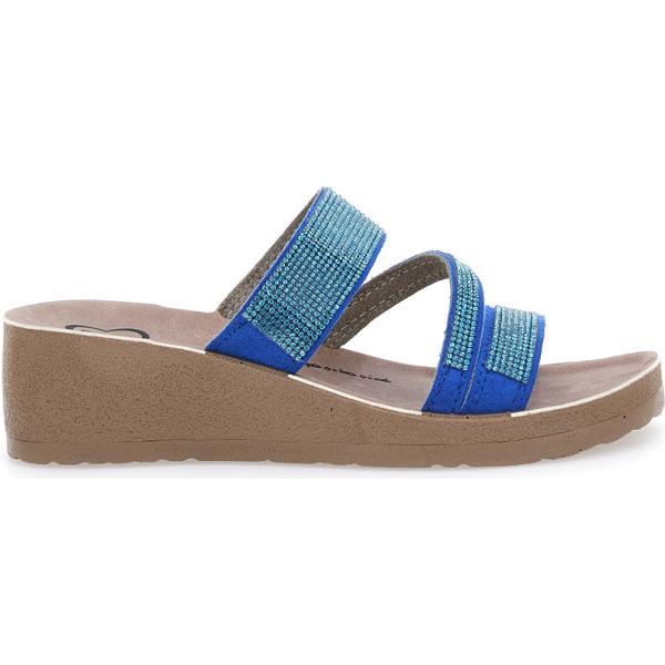 Ciabatte da donna in marrone chiaro con glitter con tacco zeppa