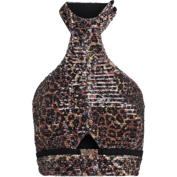 Top da donna in grigio scuro animalier con paillettes collo alto senza maniche con zip in poliestere