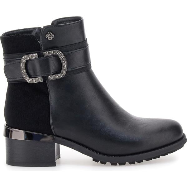 Stivaletti da donna in nero pece con tacco con zip