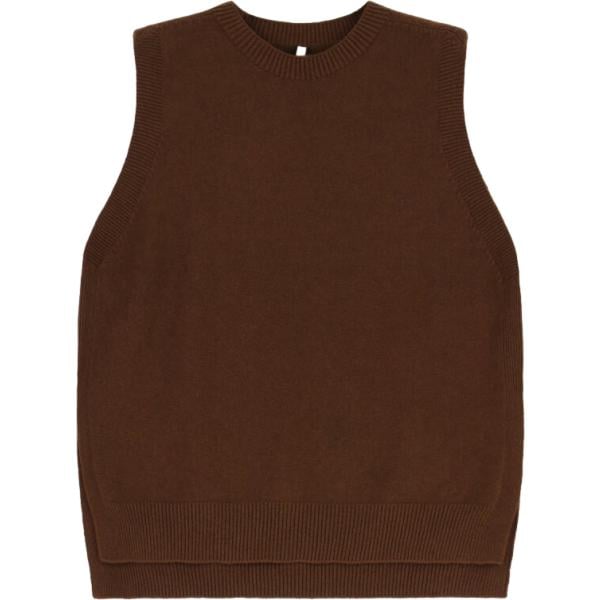 Gilet da donna in marrone scuro a quadri monopetto con bottoni