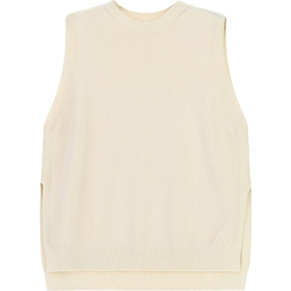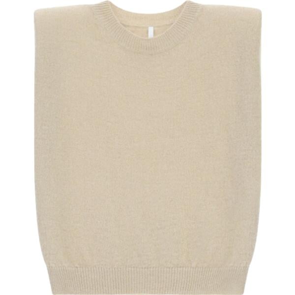 Gilet da donna in grigio scuro a righe monopetto senza maniche con bottoni