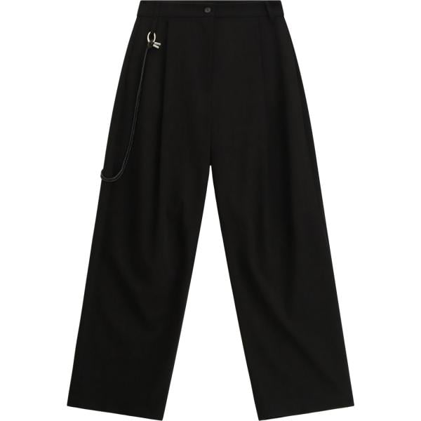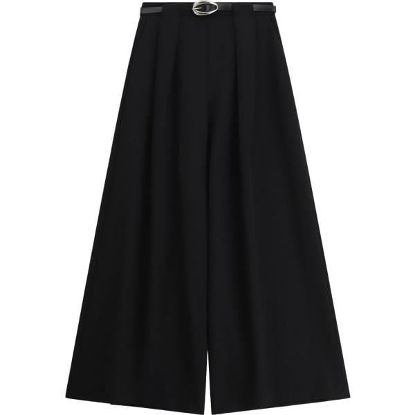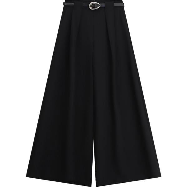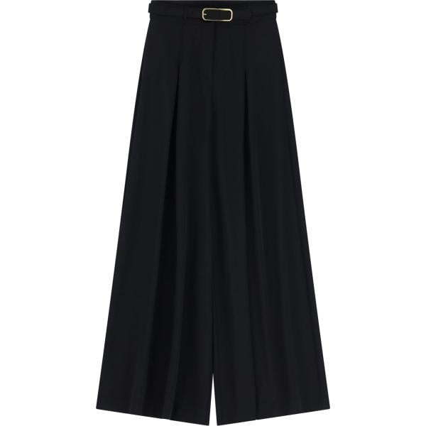 Pantaloni a palazzo da donna in nero pece a vita alta con cintura