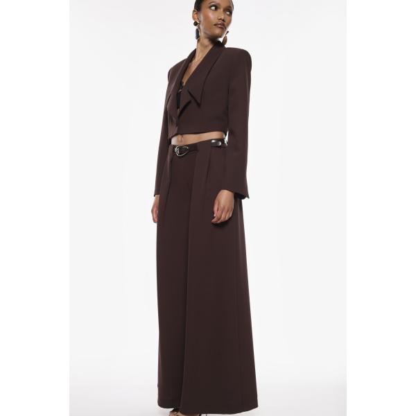 Pantaloni a palazzo da donna in marrone scuro con cintura