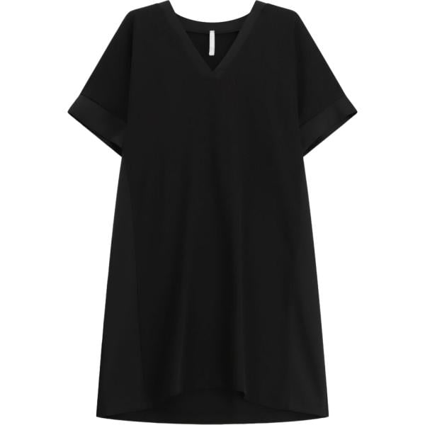 Vestito corto da donna in nero pece collo a v corto a maniche corte