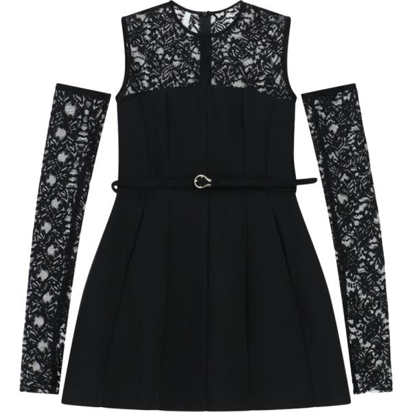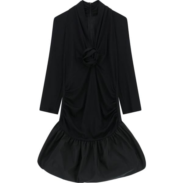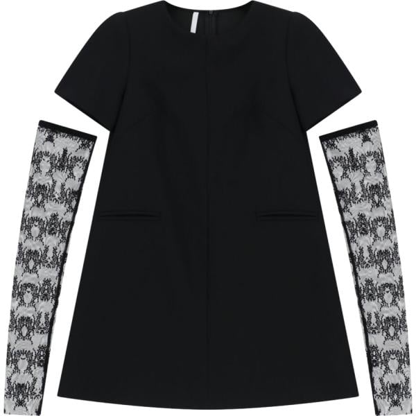 Vestito corto da donna in nero pece con scollo corto senza maniche