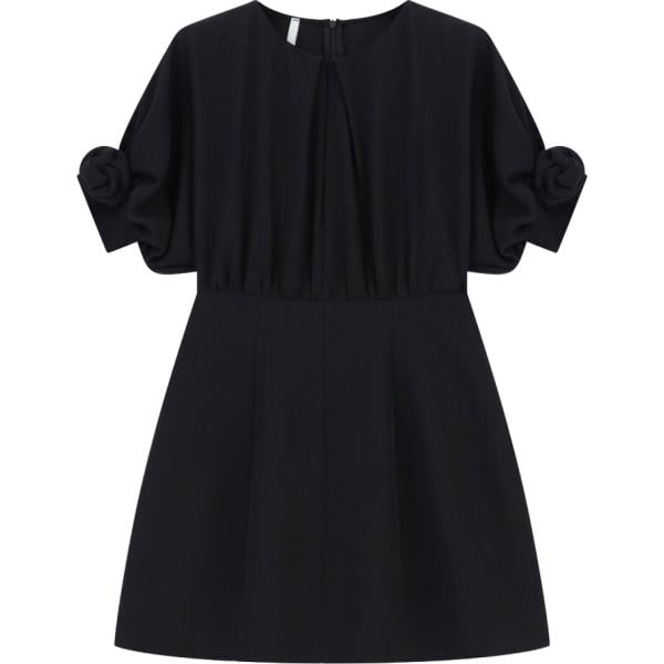 Vestito corto da donna in nero pece girocollo corto a maniche corte con zip