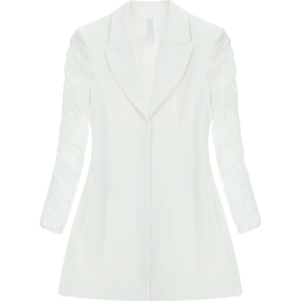 Vestito corto da donna in bianco neve collo a v corto a maniche lunghe