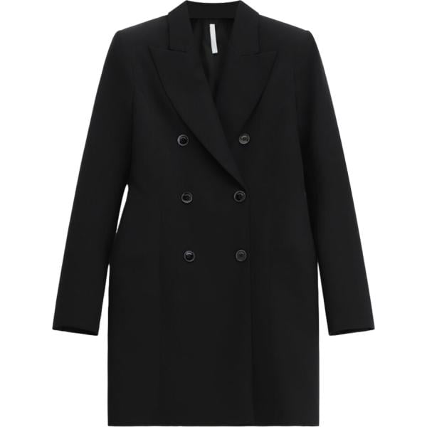 Vestito corto da donna in nero pece collo classico corto a maniche lunghe