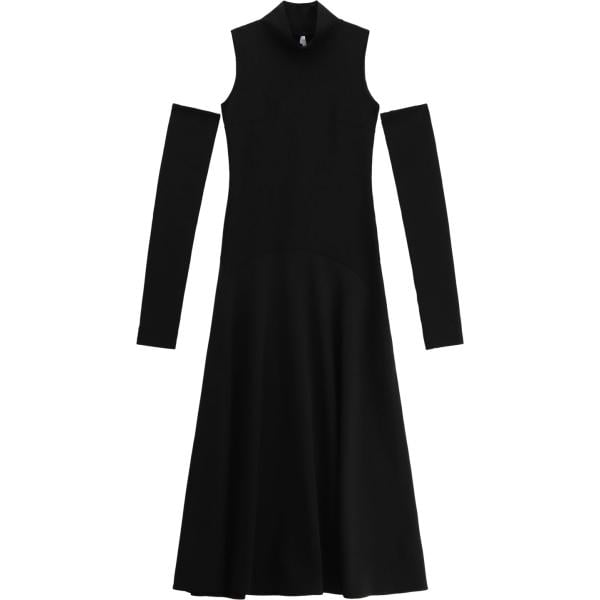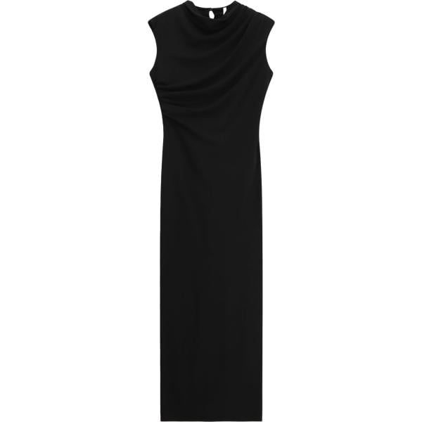 Vestito lungo da donna in nero pece collo alto lungo senza maniche