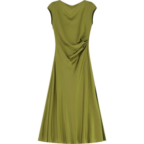 Vestito lungo da donna in verde oliva girocollo con spacco