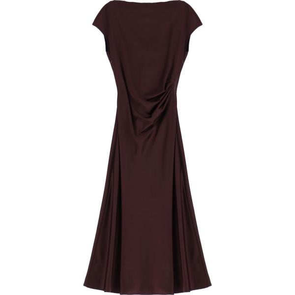 Vestito lungo da donna in marrone scuro girocollo con spacco