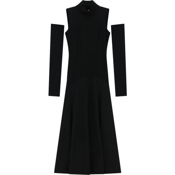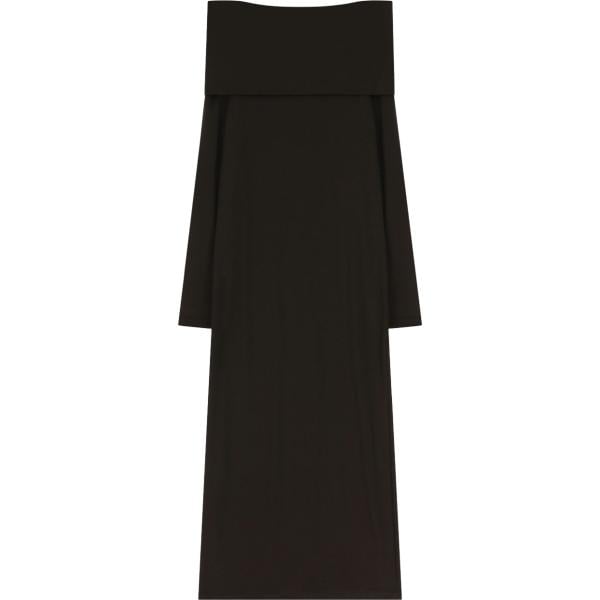 Vestito lungo da donna in nero pece collo a barchetta lungo a maniche lunghe