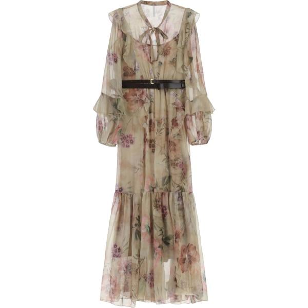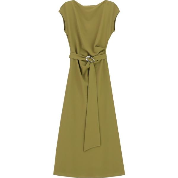 Vestito lungo da donna in beige sabbia girocollo con spacco