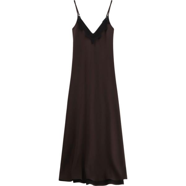 Vestito lungo da donna in marrone scuro con pizzo con spalline lungo