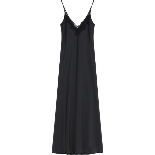 Vestito lungo da donna in nero pece con pizzo con spalline lungo