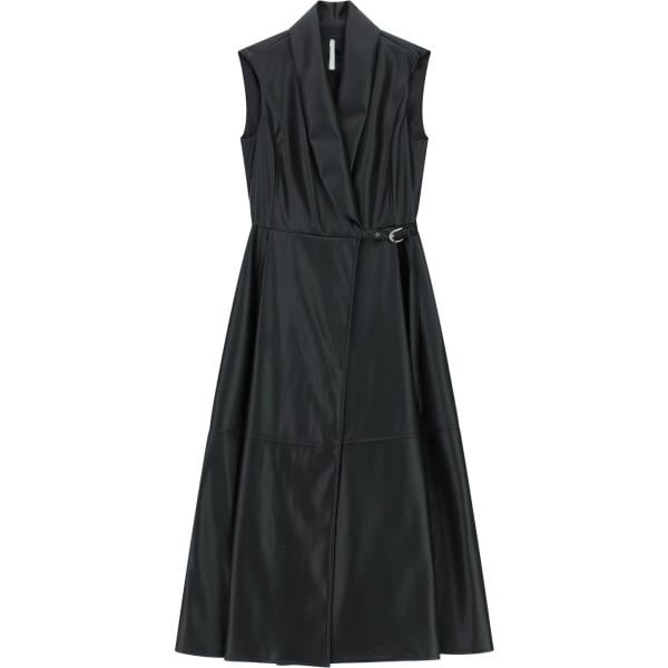 Vestito lungo da donna in nero pece lungo senza maniche con cintura