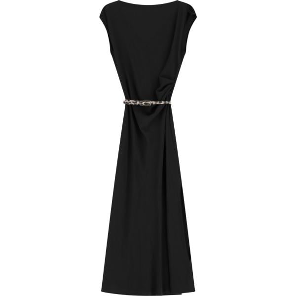 Vestito longuette/midi da donna in nero pece animalier collo a barchetta a maniche corte