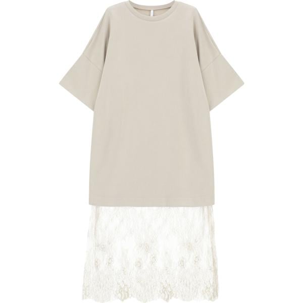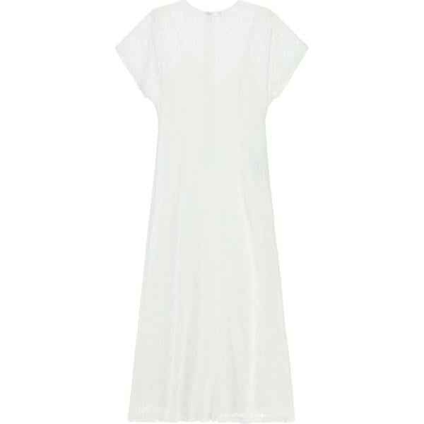 Vestito longuette/midi da donna in bianco neve con pizzo girocollo a maniche corte