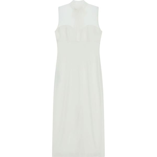 Vestito longuette/midi da donna in bianco avorio collo alto senza maniche