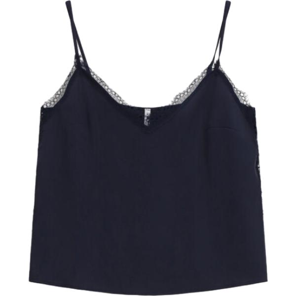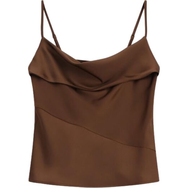 Canottiera da donna in marrone scuro con pizzo con spalline
