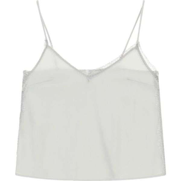 Canottiera da donna in grigio chiaro con pizzo con scollo lungo
