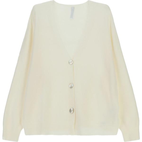 Cardigan da donna in bianco avorio con scollo con bottoni