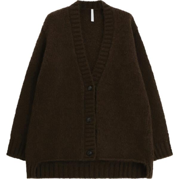 Cardigan da donna in marrone scuro collo a v a maniche lunghe con bottoni