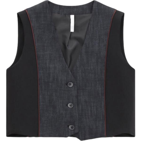 Gilet da donna in nero pece collo con revers monopetto