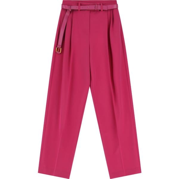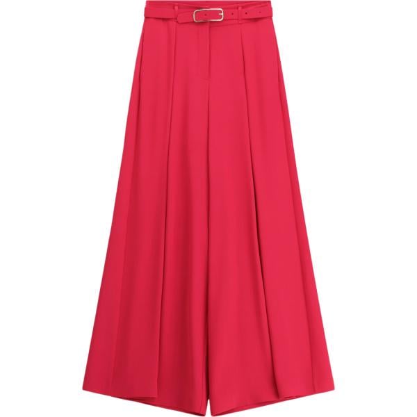 Pantaloni a palazzo da donna in rosso classico a vita alta con cintura