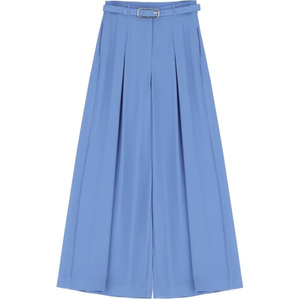 Pantaloni a palazzo da donna in azzurro a vita alta con cintura