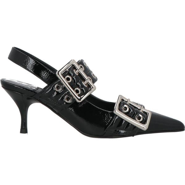 Décolleté da donna in bianco neve con tacco spillo a punta con fibbia in pelle