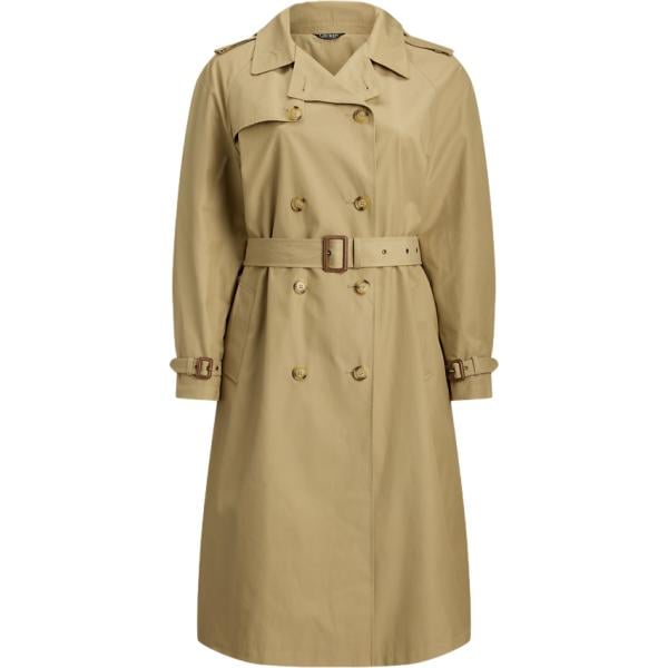 Trench da donna in marrone chiaro curvy con spalline con bottoni