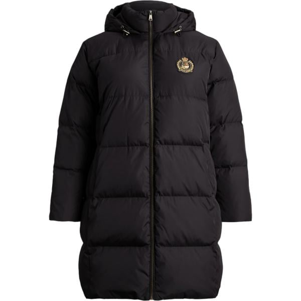 Piumino da donna in nero pece curvy collo con cappuccio con coulisse