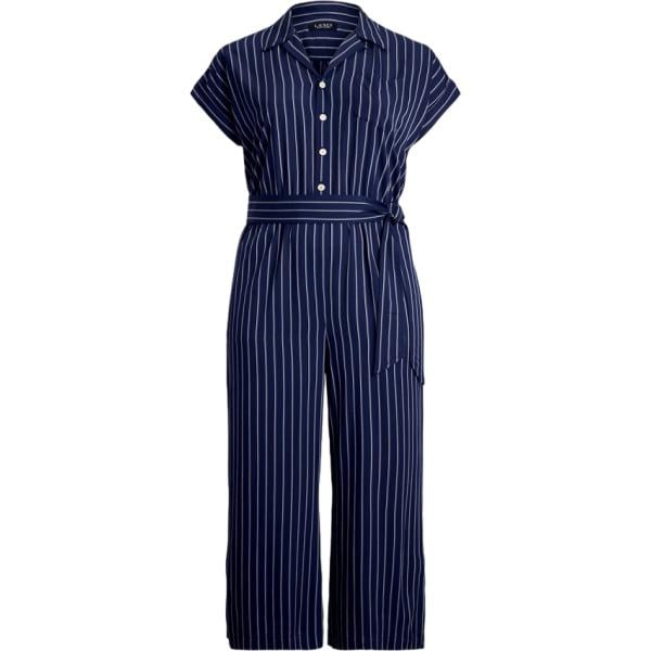 Tuta da donna in blu scuro a righe curvy con cintura