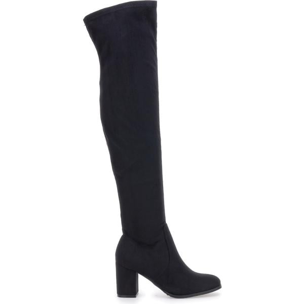 Stivali sopra il ginocchio da donna in nero pece effetto scamosciato con tacco con zip
