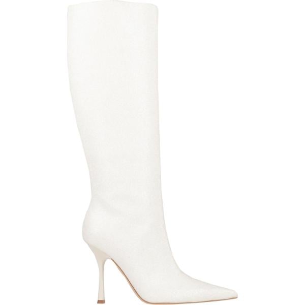Stivali da donna in bianco neve effetto scamosciato con tacco a punta tonda