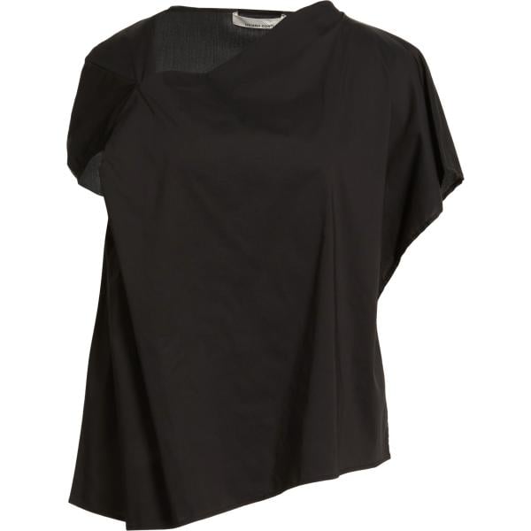 Top da donna in bianco neve girocollo a maniche corte con zip in denim