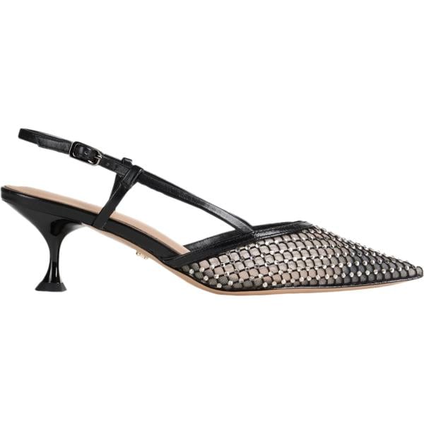 Décolleté da donna in bianco neve con tacco spillo a punta slingback in pelle