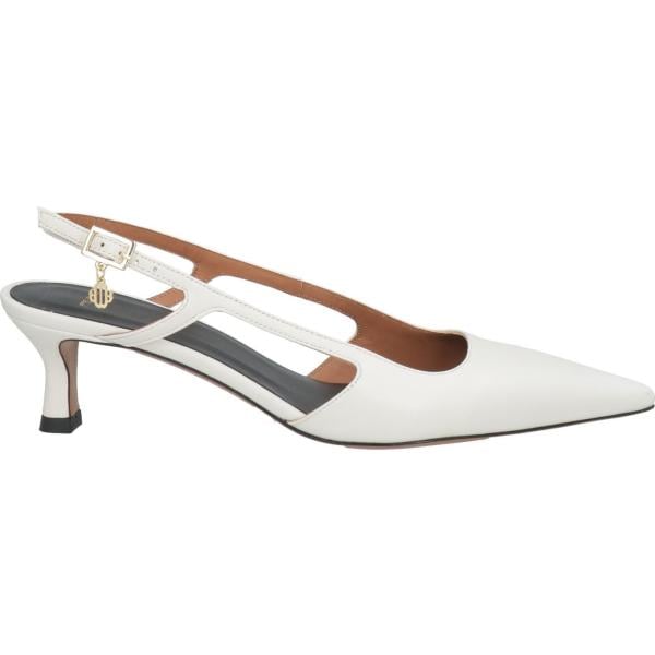 Décolleté da donna in bianco neve con tacco rocchetto a punta slingback in pelle