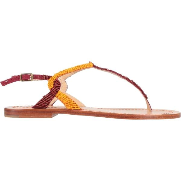 Infradito da donna in marrone chiaro con perle senza tacco a punta tonda con cinturino in pelle