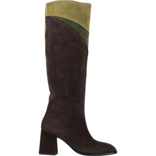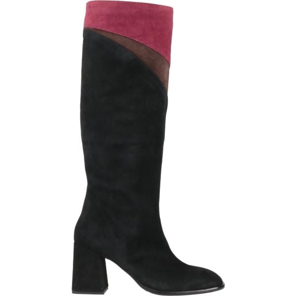 Stivali da donna in nero pece effetto scamosciato con tacco squadrato a punta quadrata in pelle
