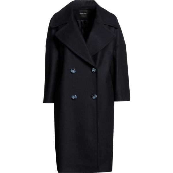 Cappotto da donna doppiopetto in blu scuro collo con revers a maniche lunghe in lana