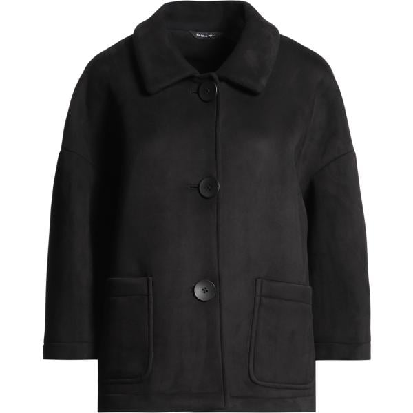 Cappotto da donna in nero pece effetto scamosciato monopetto con bottoni